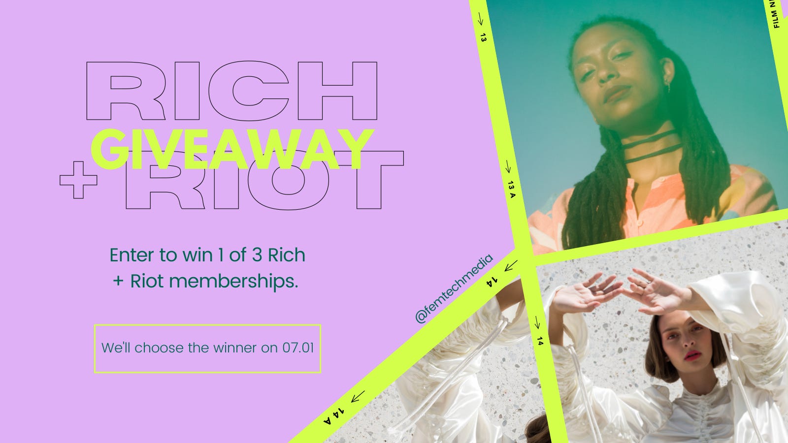 If you haven’t heard, We’re thrilled to announce that Rich + Riot has partnered with Femtech Media to give away THREE annual memberships to FemTech leaders—each valued at $100. Get your submission in now. The winner will be announced this Thursday, July 1.